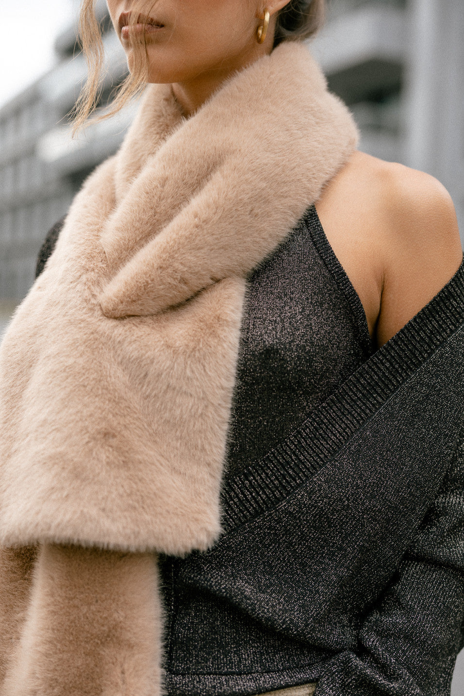 • Longue écharpe tubulaire très douce en fausse fourrure effet naturel