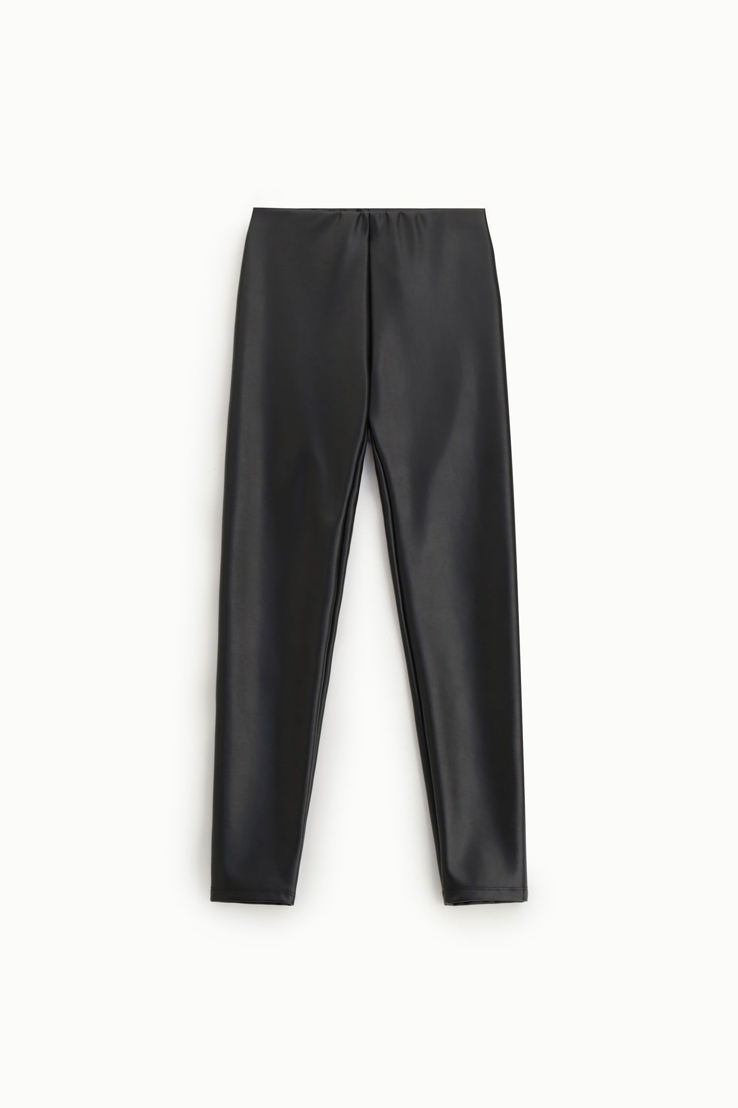 Trousers ajustés taille haute dotés d’une finition aspect cuir, valorisent la silhouette par leur coupe épurée et actuelle. Conçus pour ceux qui revendiquent une allure sophistiquée et urbaine, ils s’intègrent aussi bien aux tenues citadines qu’aux looks du soir, offrant de multiples combinaisons