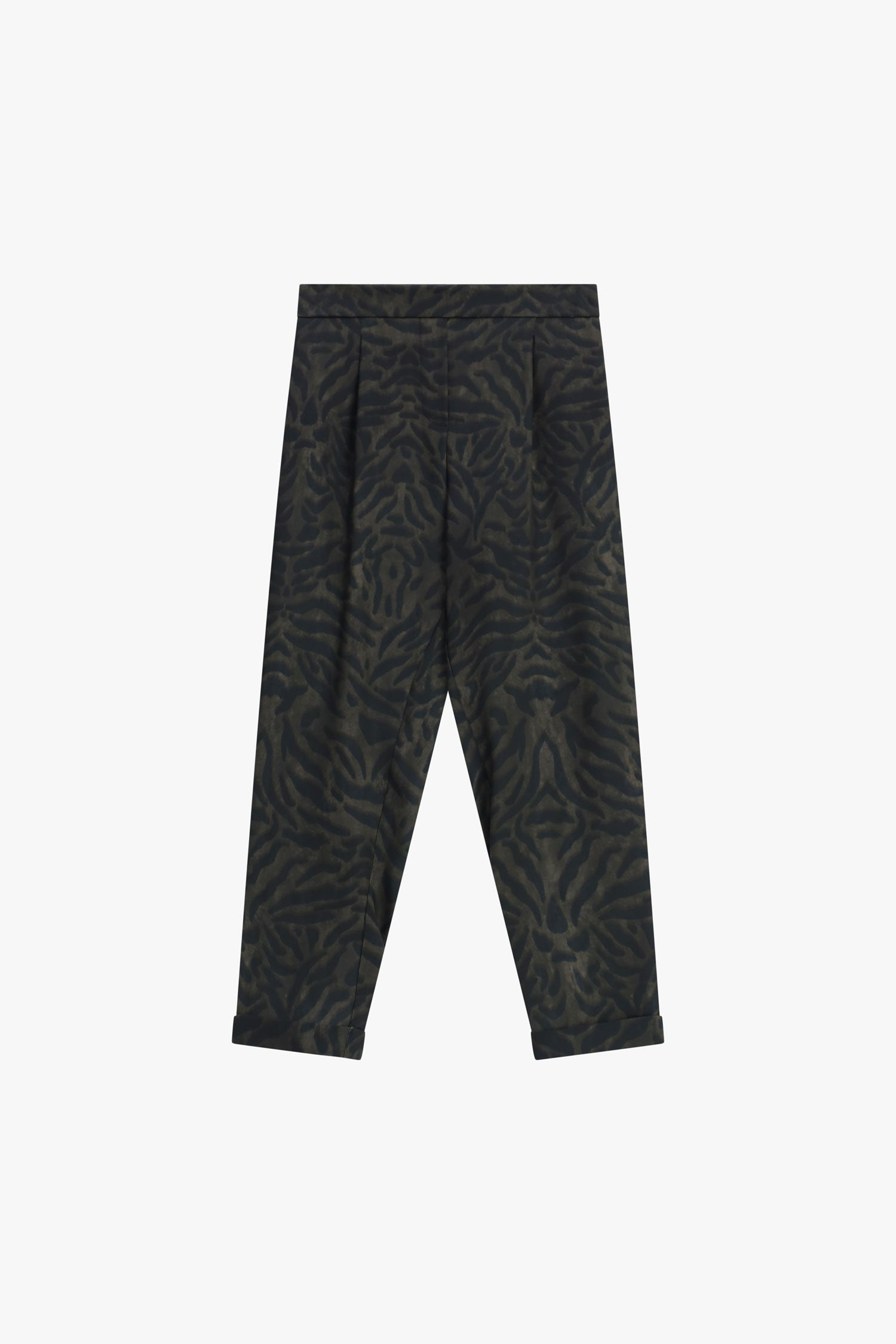 Ces trousers chino-fit à imprimé animal et pinces sur le devant boostent lesprit créatif du quotidien. La coupe décontractée sajuste à toutes les aventures urbaines, et lourlet retroussé donne du caractère à chaque mouvement. Parfait pour twister tes tenues et réinventer ton style.
